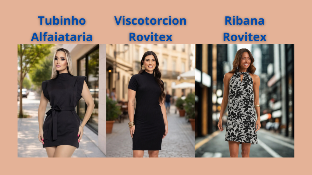 | Característica | Vestido Tubinho Alfaiataria | Vestido Viscotorcion Rovitex | Vestido Ribana Rovitex |